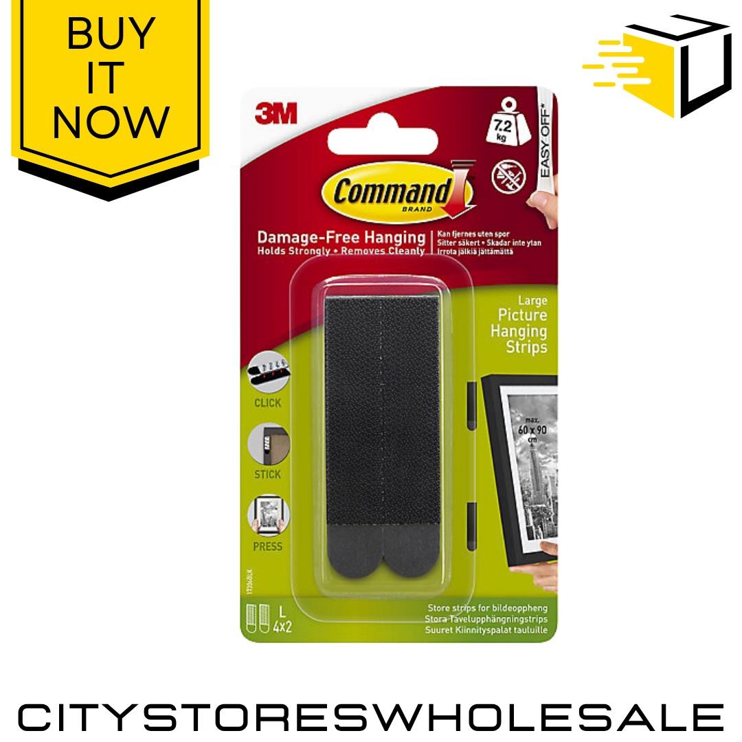 3M Command Large Picture Hanging Strips Black, 4 Pairs, Damage-Free Wall Hooks
