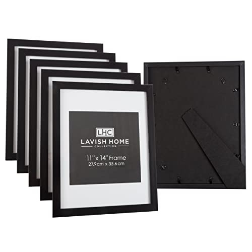 Lavish Home Set of 6 Picture Frames - 11x14 Photo Frame Set with Stand and Hooks for Gallery Wall or Family Portrait - Picture Wall Decor (Black)