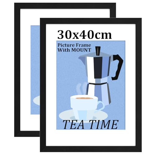 Bobeen 30x40cm Picture Frames with Mount, 2 Pack 16x12 Black Photo Frame with 2 Hooks for Wall Mounting Portrait or Landscape
