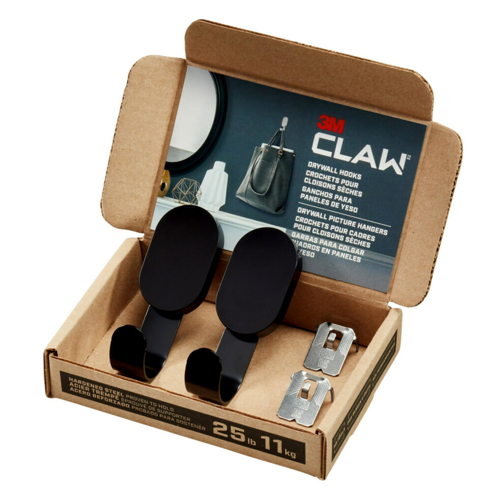 3M CLAW 25 lb. 2 Drywall Black Hooks & 2 Extra Picture Hangers Heavyweight Hanging Solution for Backpacks Jackets Pictures and Room Decor Cute Wal