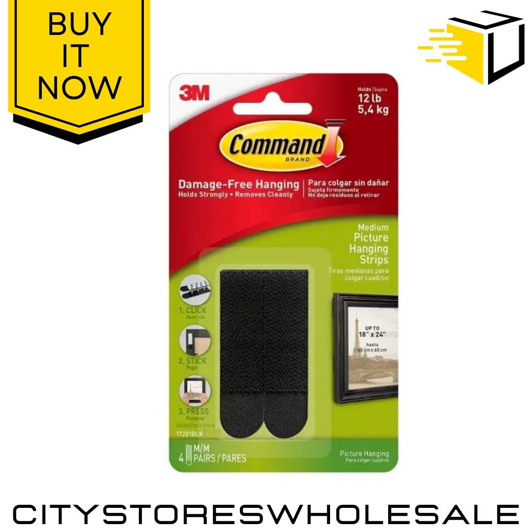 3M Command Medium Picture Hanging Strips Black, 4Pk, Damage-Free Wall Hooks