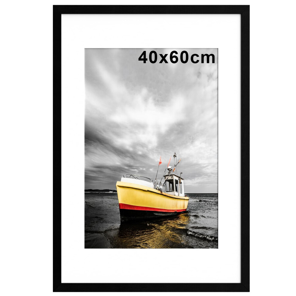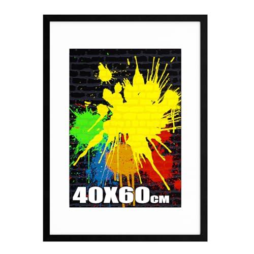 Hiyzaun 40x60cm Picture Frame with Mount, Black 40x60 Photo Frame with Perspex Window, 4 Hooks for Mounting