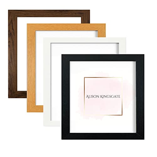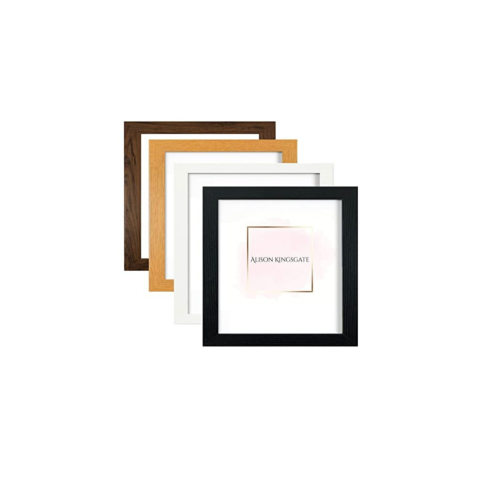 Modern 40x40cm Picture Frames - In Multiple Colors & Sizes - 40x40cm Frame With Perspex Front & Wall Hanging Hooks – White Black Oak Poster Frames (Black)