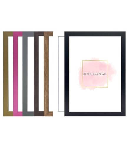 Alison Kingsgate Elegant Sleek Black A5 Frame Size (14.8 x 21cm) - Flat Classic Design Black A5 Picture Frame with Safe Perspex Front & Wall Hanging Hooks - British Handmade Décor Frames