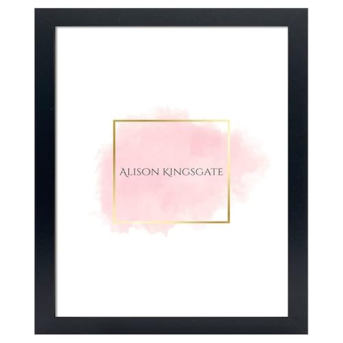 Alison Kingsgate Black 10x8 Frame With Mount For 8x6 Size (15.24 x 20.32cm) - Modern Design Black 10x8 Picture Frame With Mount with Safe Perspex Front & Wall Hanging Hooks - Handmade Frames