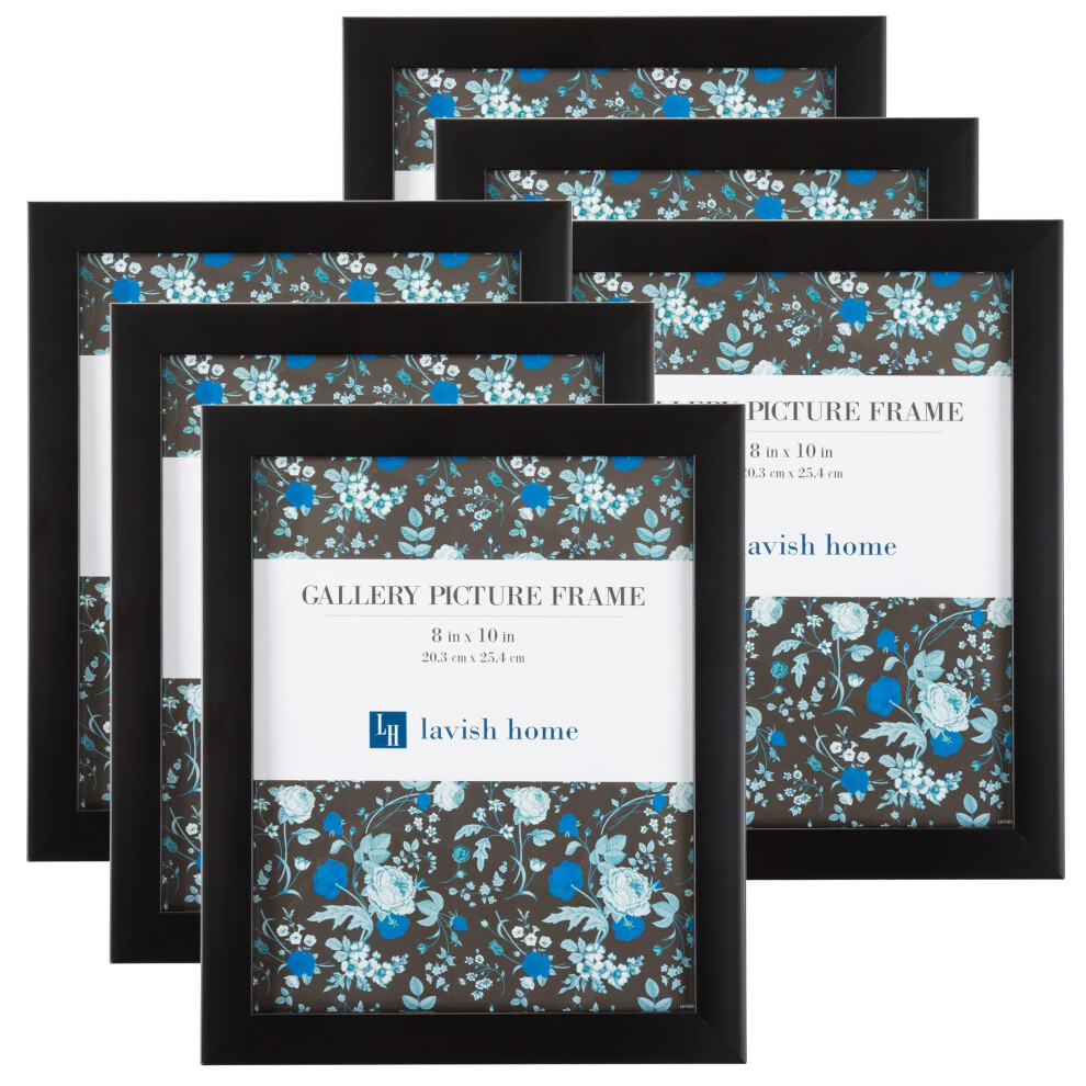 Set of 6 Picture Frames - 8x10 Photo Frame Set with Stand and Hooks for Gallery Wall or Family Portrait - Picture Wall Decor by Lavish Home (Black)