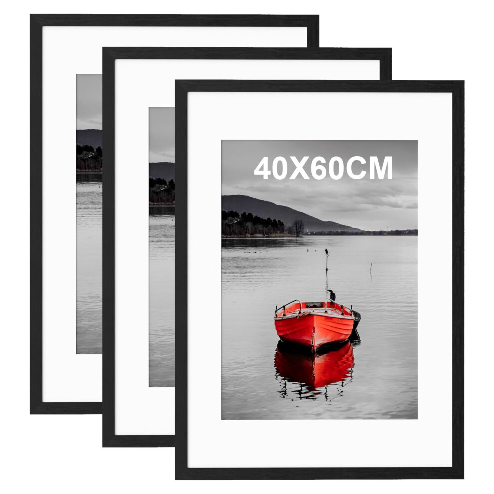 Hiyzaun 40x60cm Picture Frame, Pack of 3 Black 60x40 Photo Frame with Mount, 4 Hooks for Mounting