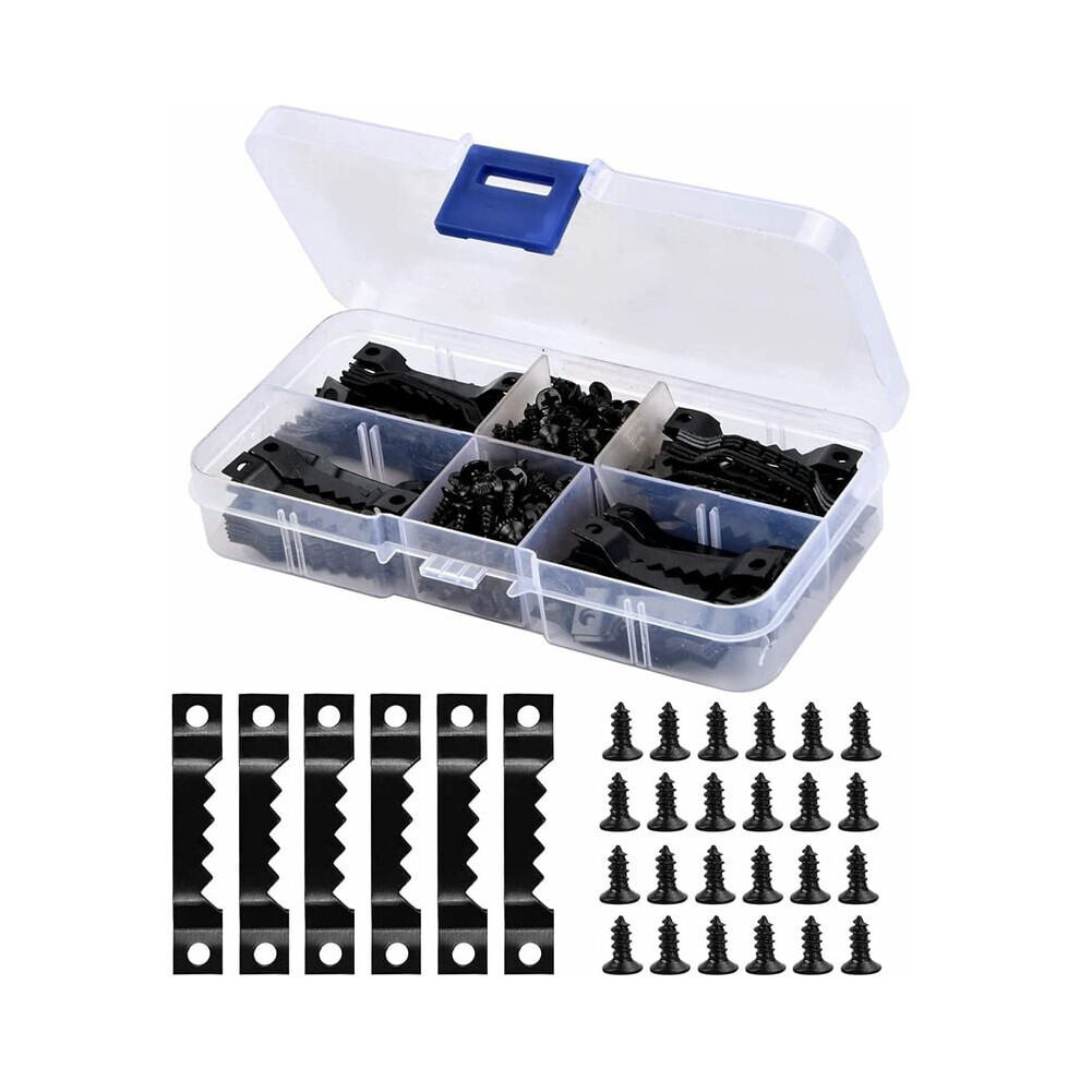 100Pcs Wooden Frame Hangers with 200Pcs Screws - Picture Frame Hooks - Black Black
