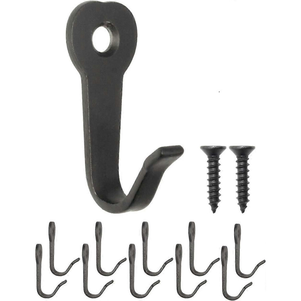 (As show, One size) 40 x 22 mm, black, Pack of 10 classic cloakroom hooks, iron hooks, metal hooks, picture hooks, vintage retro country house style
