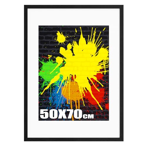 FRAMES BY POST 25mm Black Photo Picture Poster Frame with White Mount 50 x 70cm For Pic Size 24" x 16" with Plastic Glass - Solid Wood Frames with Acrylic Glass for Pictures - With Wall Hanging Hooks