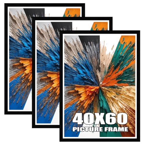 Hiyzaun 40x60cm Picture Frame, Pack of 3 Black 40x60 Photo Frame with Perspex Window, 4 Hooks for Mounting