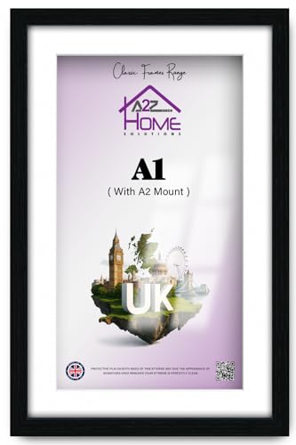 A2Z Home Solutions® Photo Frame Black A1 Frame With A2 Mount Picture Poster Print With Clear HD Perspex 30x15 MM Moulding Mounting Hooks MDF Backboard