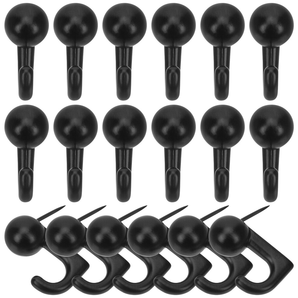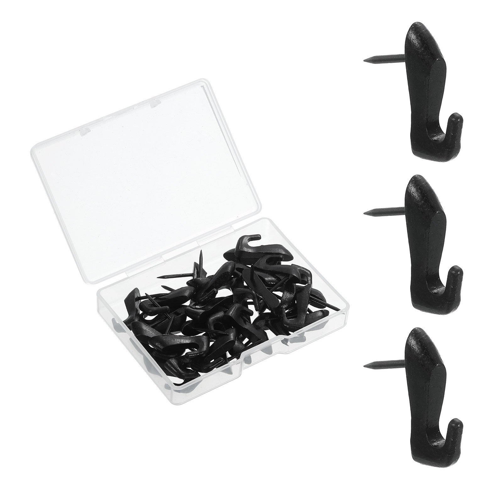 30Pcs Heavy Duty Black Push Pin Picture Hooks Zinc Alloy Wall Hangers