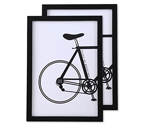 Zemiu 2Pack A4 Picture Frames, Wooden Photo Frame 29.7x21cm-12x8inches with Perspex/Hanging Hooks,for Wall/Desk Pictures Print Display -Black