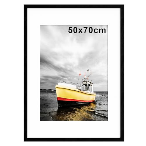 Pycisid 50x70cm Picture Frame with Removable Mount, Black 50x70 Frames with Safe Perspex, 70x50cm Photo Frames with Wall Hanging Hooks
