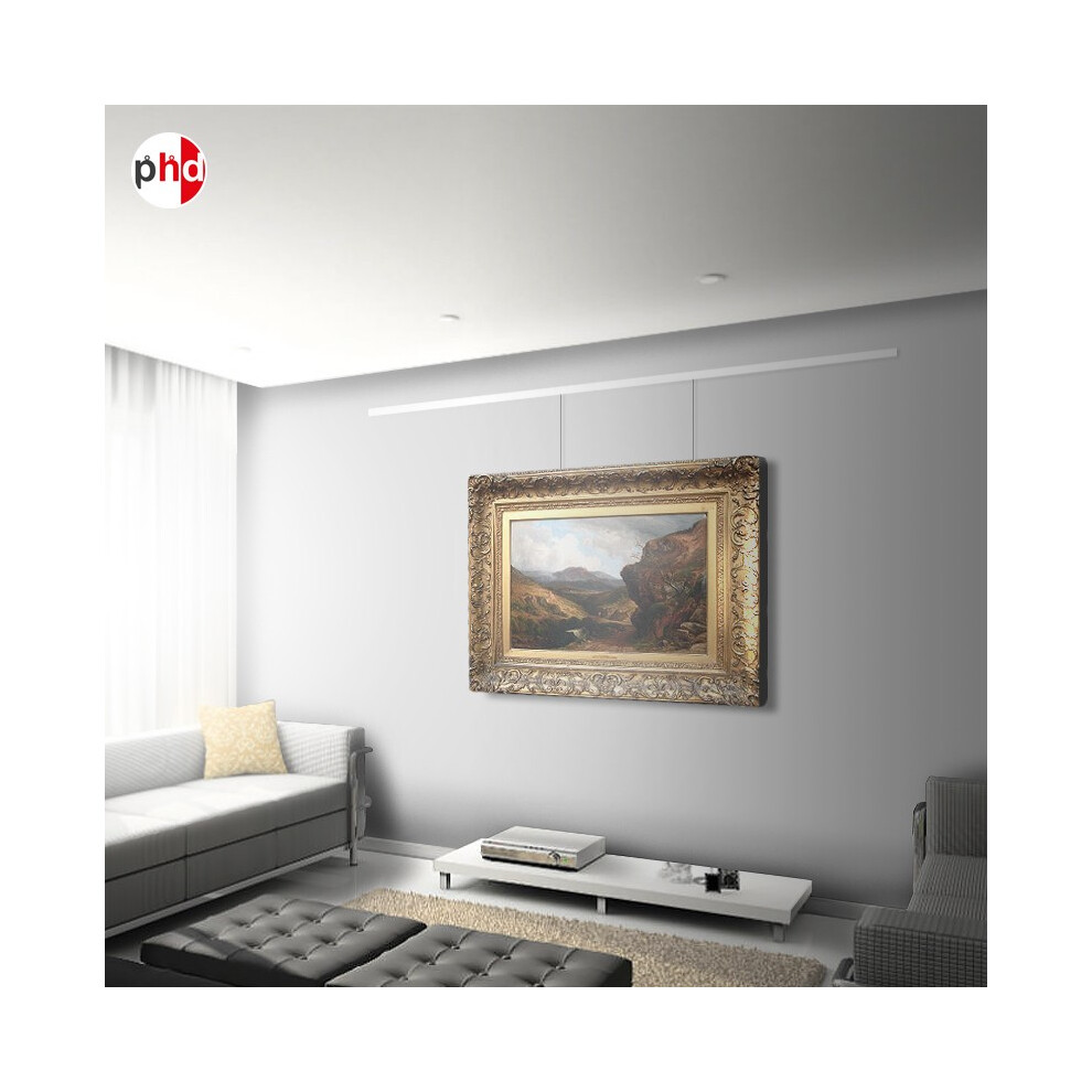 (Black) 'All-in-one' HD Clip Rail 2m Gallery System Kit, Heavy Duty Picture Rail & Hooks Set (Wall Hanging)