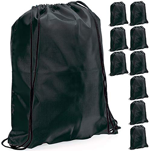 eBuyGB Pack of 10 Plain Polyester Drawstring Backpack, Gym Rucksack, School Sport Bag, PE Kit, Book Bag - Ideal for Printing, Cameo, Heat Transfer Vinyl (Black), 34 x 42 cm
