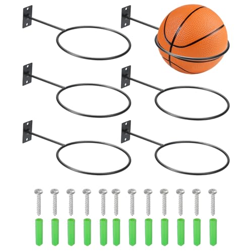 PATIKIL 5 Inch Ball Holder Wall Mount, 4 Pack Ball Display Wall Storage with Screws for Basketball Football Volleyball Display Decor Storage Ring Planter, Black, 4mm Thick