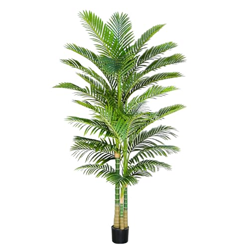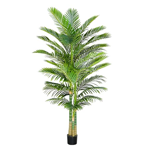 TXABL Artificial Golden Cane Palm Tree 210 CM, Fake Palm Tree with Three Realistic Trunks, Faux Plants for Indoor Home Decor with Black Planter