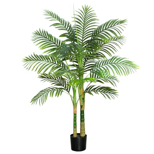 ASTIDY Artificial Palm Tree 5FT - Fake Tree with Black Tall Planter - Faux Tropical Areca Floor Plant in Pot - Artificial Silk Plant for Home Office Living Room Decor Indoor