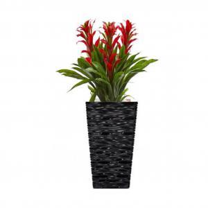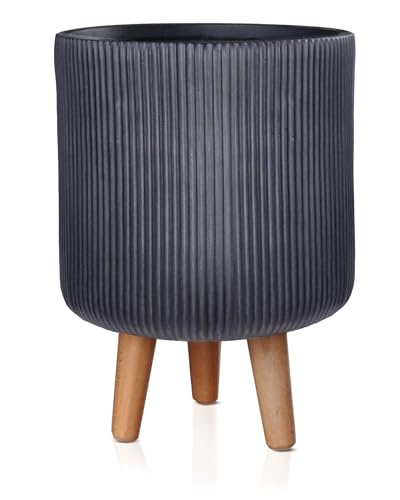 IDEALIST 21cm Indoor Plant Pot | Fluted Black Reinforced Stone Planter with Legs| Flower Pot Cover D21 H36 cm, 8 litres