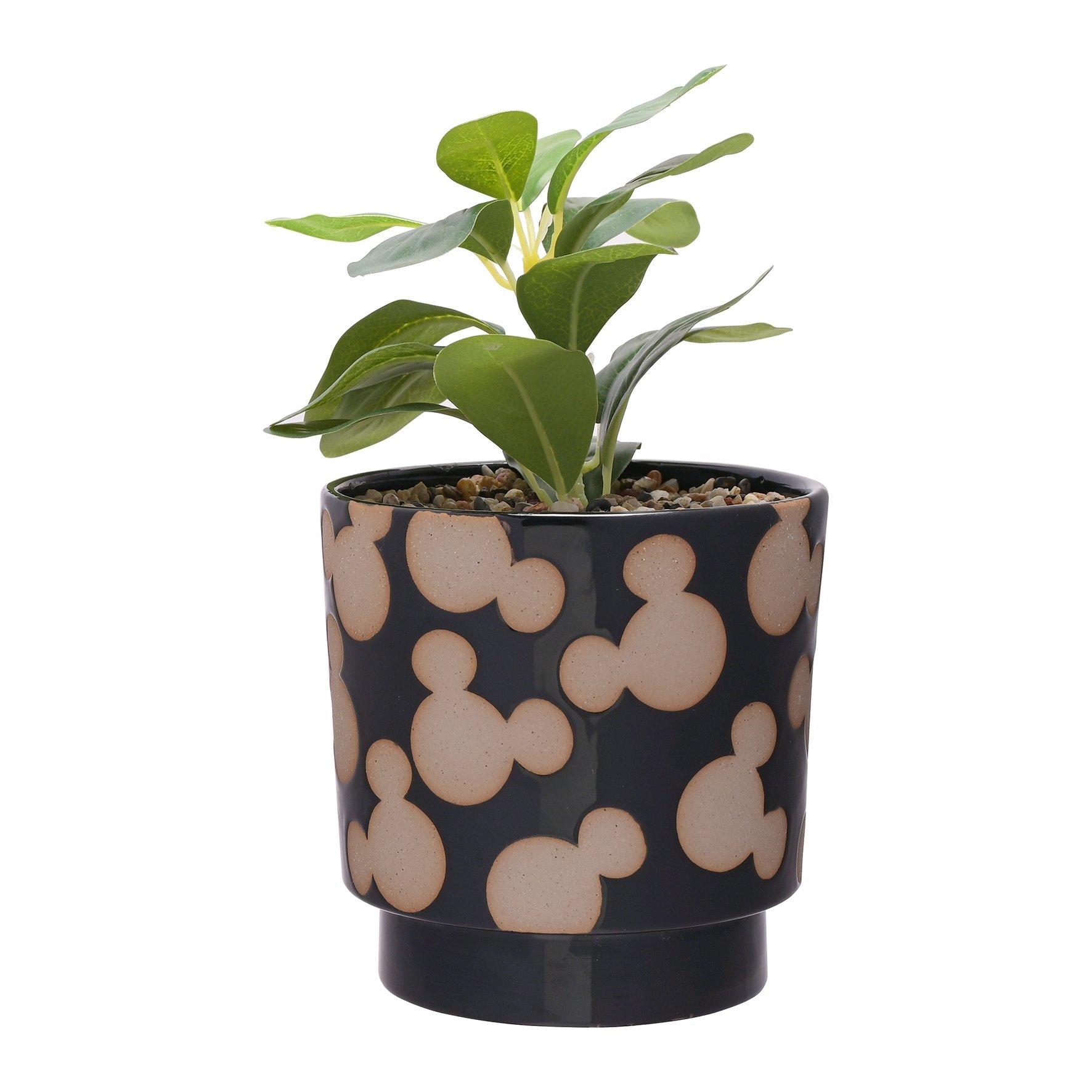 Artificial Plants Potted Real Looking Small Faux Plant with Rustic Black Cement Planter for Kitchen Office Desk Bookshelf Decor (Ficus Plant)