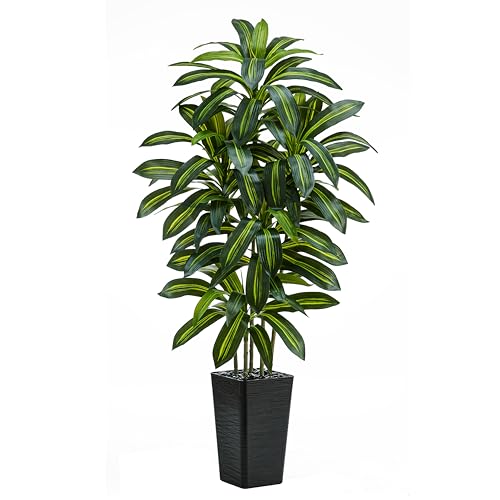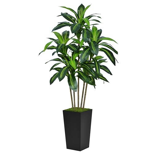 TNGGNT Artificial Plants Dracaena Tree 5FT, Large Artificial Plants Indoor with Black Tall Planter, Tall Fake Floor Plant in Pot Indoor Decor, Fake Dracaena Tree for Home Living Room Office Decor