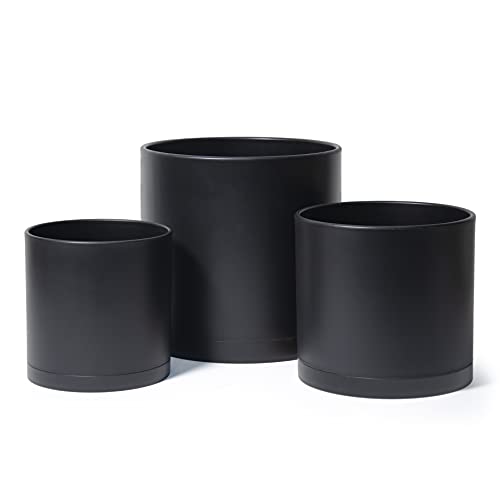 D'vine Dev 6 Inch 6.5 Inch 8 Inch, Set of 3, Black Colour Planter Pots for Plants with Drainage Hole and Seamless Saucers, Medium, 74-E-M-2
