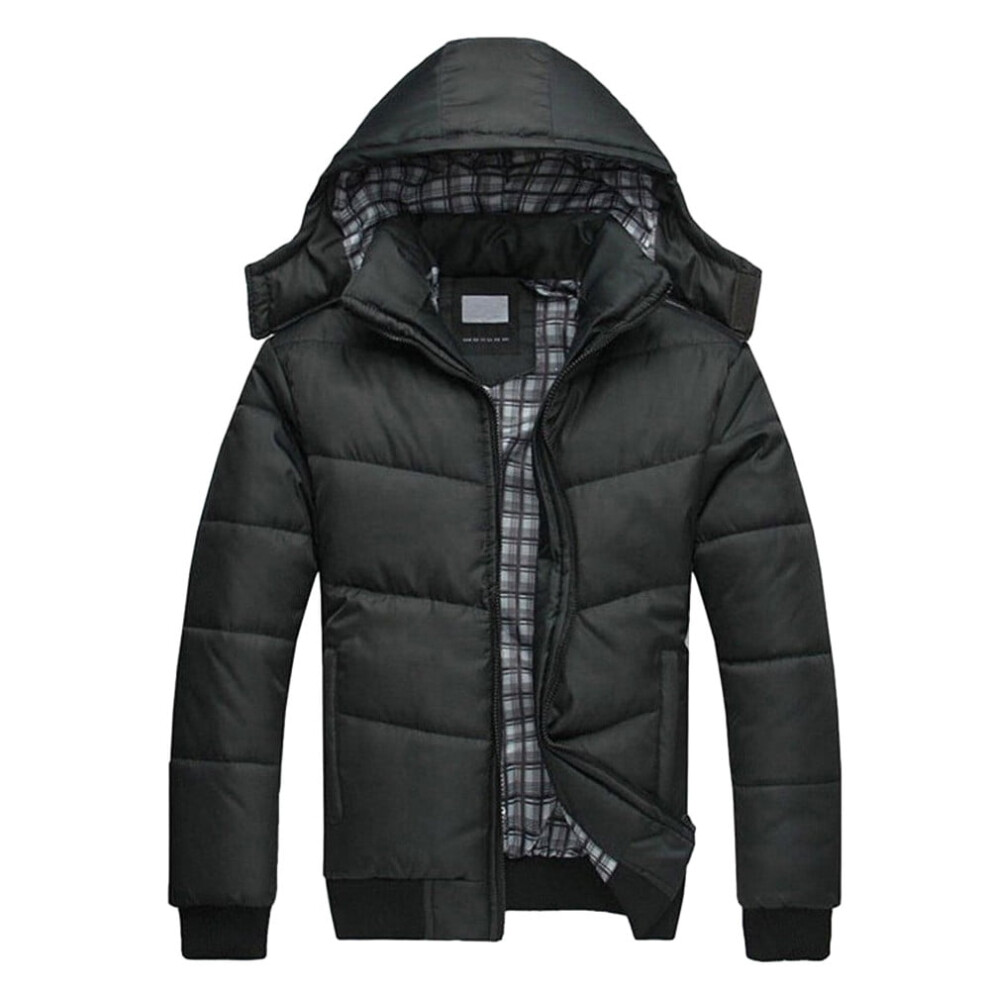 Men'S Black Puffer Jacket Warm Overcoat Outwear Padded Hooded Down Winter Coat Black L