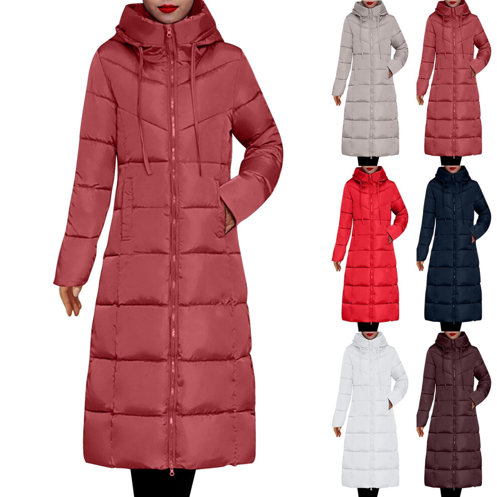 Women's Plus Size Black Puffer Jacket, Mid-Length Thickened Warm Trench Coat with Pockets, Fall/Winter Casual Jacket, XL, Compatible with Cold