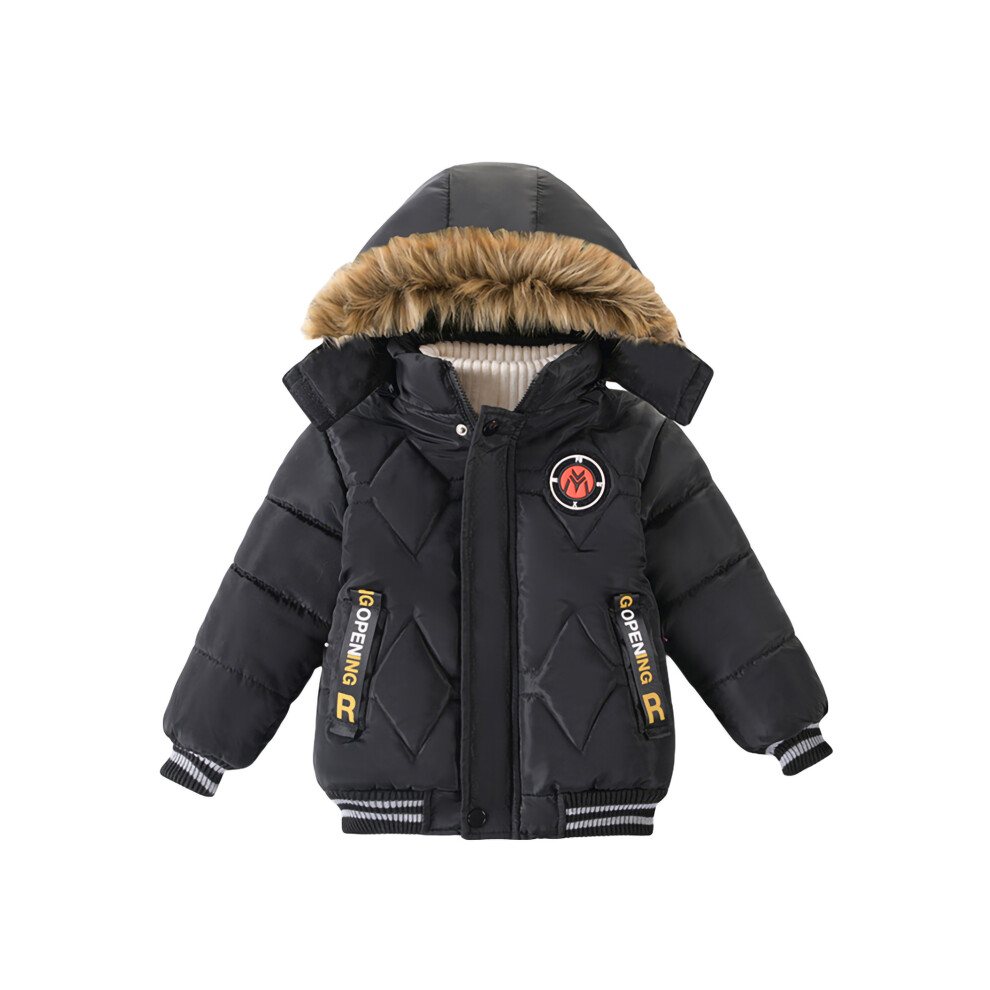 (2-3 Years, Black) Toddler Hooded Puffer Jacket, Boys Thick Long Sleeve Winter Warm Coat with Pockets