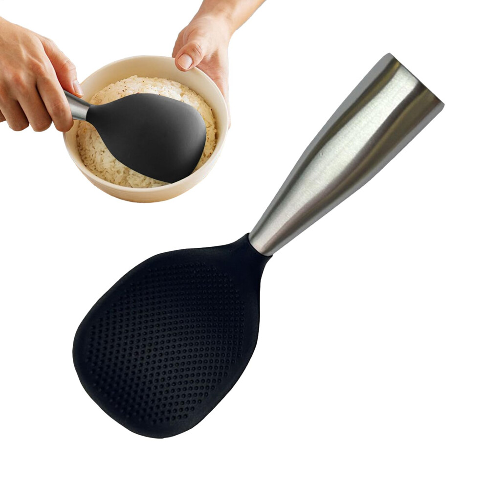 Rice Scooper Non-Stick Silicone Standing Spoon, Heat-Resistant Mashed Potatoes Tool, Cooker Accessory, Black