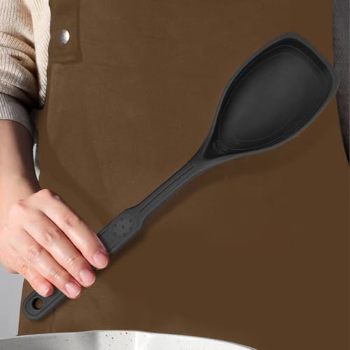 CVIUYO Silicone Spatula Cooking Spoon, 3-in-1 Silicone Kitchen Spoon, Heat Resistant Nonstick Solid Spoon with Deep Groove and Measurement Mark for Frying, Serving Soup and Rice (Black)
