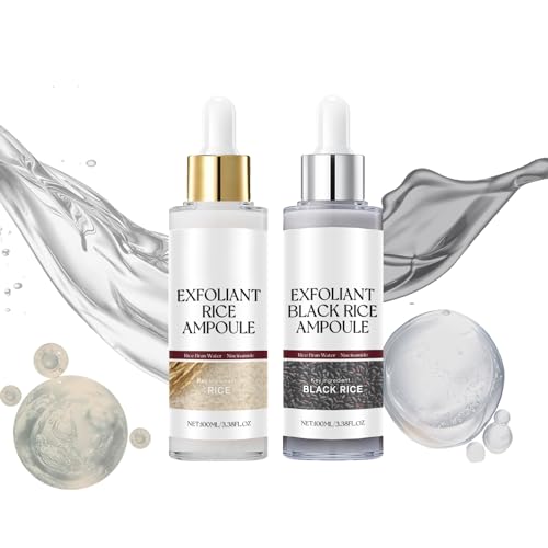 Black and White Rice Face Exfoliantor, Black and White Rice Peeling Ampoule, Soft Exfoliating Face Exfoliator, Hydrating Formula for All Skin Types(2PCS)