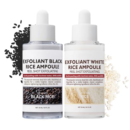Peel Shot Glow Rice Ampoule Duo White Rice + Black Rice Ampoule,Face Scrub Exfoliator Pore Minimizer for Face,Gentle Soft Facial Scrub Exfoliator,Body Exfoliator Dead Skin Remover for All Skin Types