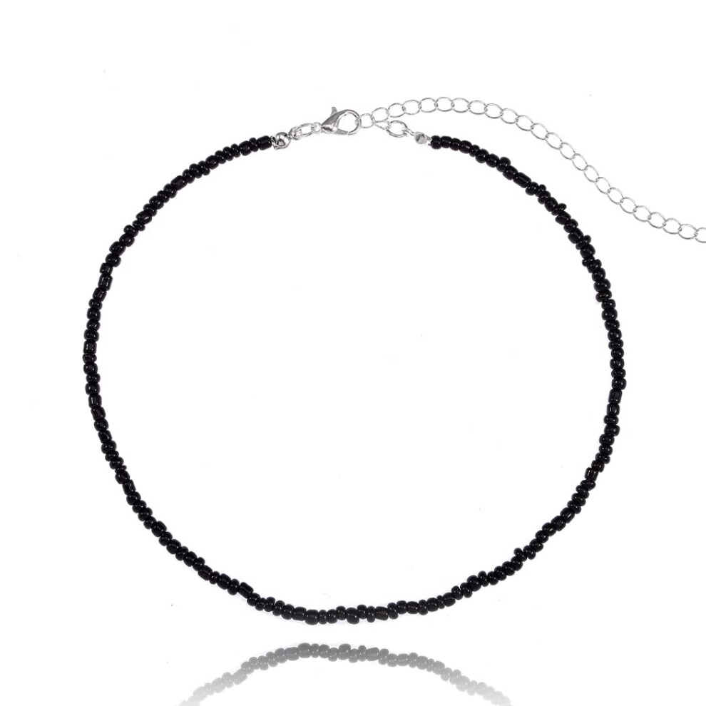 Tgirls Boho Choker Necklace Chain Black Rice Beaded Necklaces Beach Su