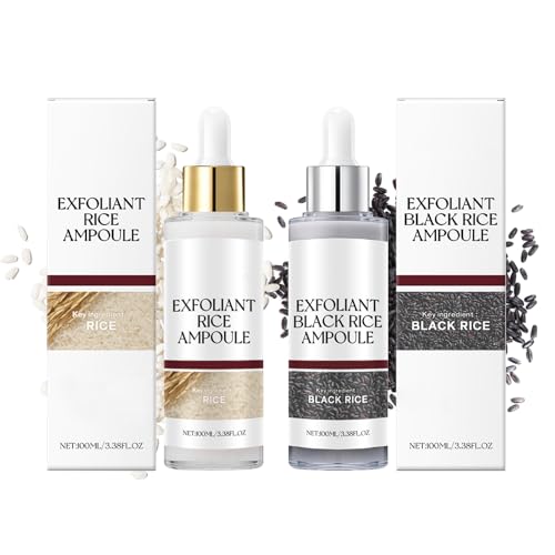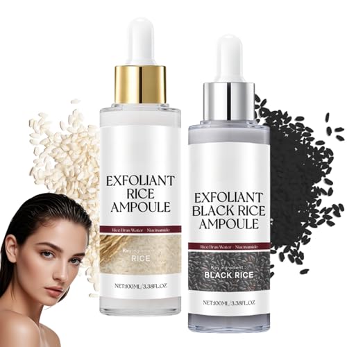 Rice Ampoule Duo,Peel Shot Glow Rice Ampoule Duo White rice ampoule+Black rice ampoule Soft Exfoliating Face and Body Scrub Dead Skin Cells, Blackheads Remover for All Skin Types