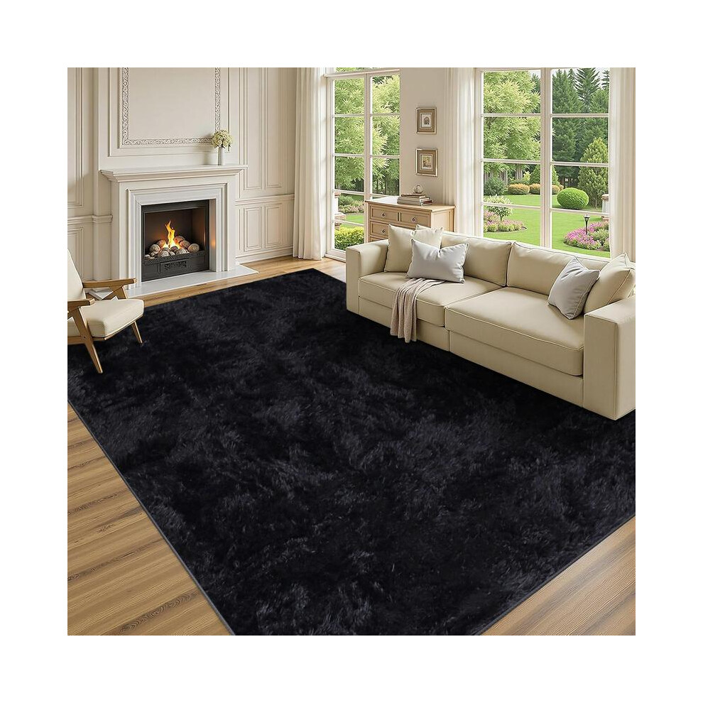 (Black, 120 x 170 CM) Rugs Living Room Large - Black Fluffy Rug - Area Rugs for Bedroom Large Modern Shaggy Rug Super Soft Non Slip Thick Pile