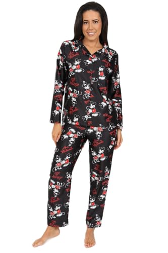 Disney Minnie Mouse Ladies Long Satin Pyjama Set Summer Two Piece Pyjamas for Women Silk Satin sizes 8-22 (8-10) Black