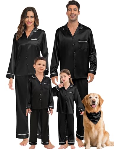SWOMOG Family Matching Pyjamas Sets Silk Satin Long Sleeve Sleepwear Women Men's Pj Set Down Nightwear Loungewear 2 Pcs Black