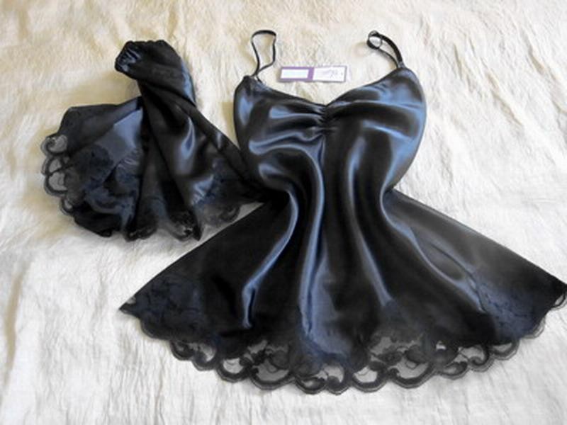 Sexy Dress Lingerie for Women Women's Lingerie Satin Silk Pyjamas Women's Nightdress Robe Pyjamas Crossdresser Lingerie Thong for Black S