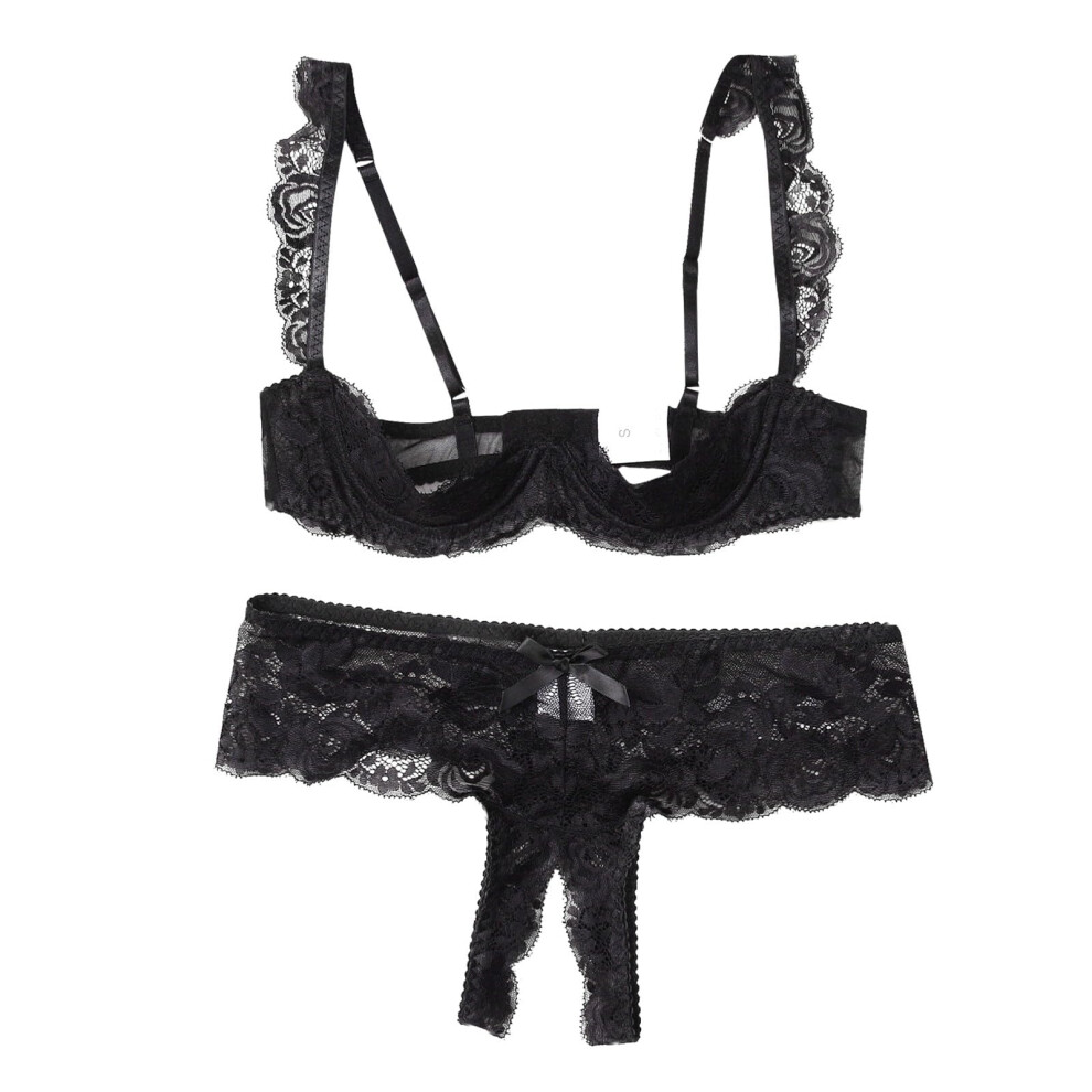 Lingerie for Women Plus Size Sexy Underwear Bra and Panty Garter Belt Satin Pyjamas Black XL