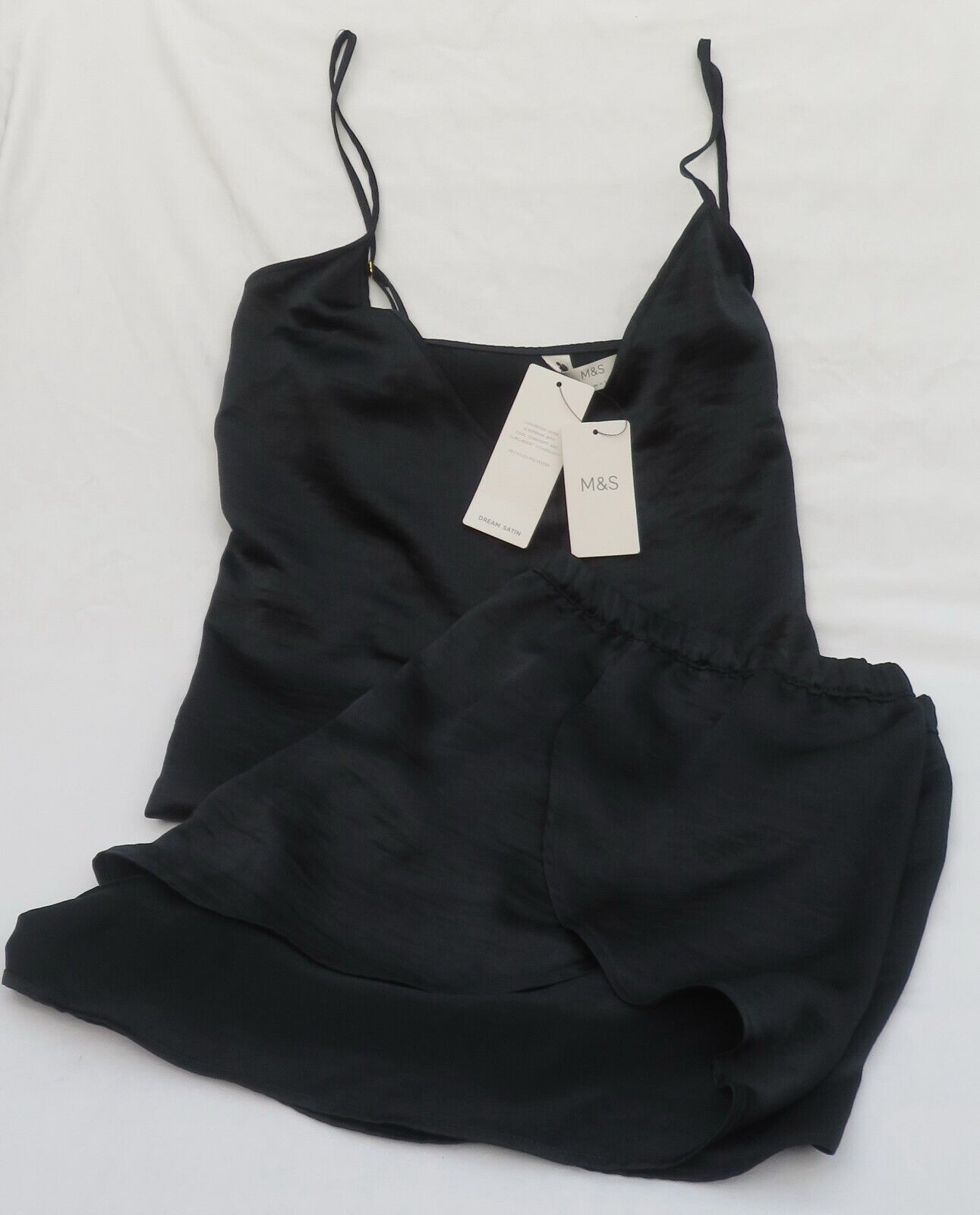 LADIES MARKS AND SPENCER BLACK DREAM SATIN SHORT PYJAMAS 2 PART SET SIZE 18
