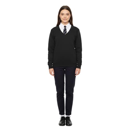Trutex Plain V Neck Jumper 100% Cotton Unisex | Standard Fit Long Sleeve School Jumpers (11-12 Years, Black)