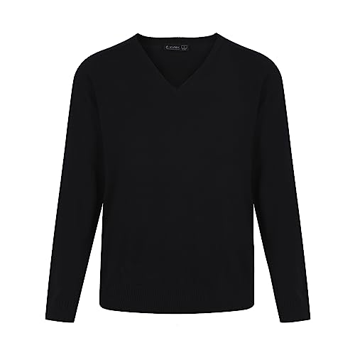 Trutex Plain V Neck Jumper 100% Cotton Unisex Girl's Boy's Kids Size Age 3-16+ Years, Men's Size XXS to 3XL | Standard Fit Long Sleeve School Jumpers (X-Small, Black)