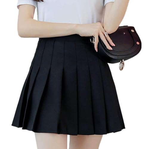 scicent Black Pleated School Skirt Women Girls Short High Waist Pleated Skater Tennis Skirt School Skirt Uniform with Inner Shorts Black XL UK 8 10