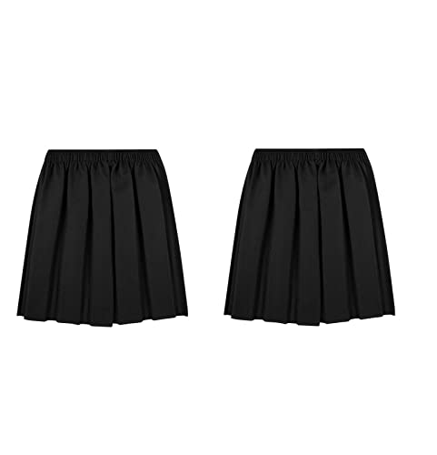 LUXFAB UK School Uniform Girls Summer Formal Dress Bottom Full Elastic Box Pleat Skirt Only Uniform (UK, Age, 11 Years, 12 Years, Regular, Pack of 2 - Black)