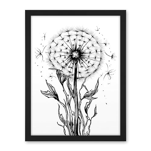 Artery8 Dandelion Flower Seed Black and White Rockabilly Americana 50s Artwork Framed Wall Art Print 18X24 Inch