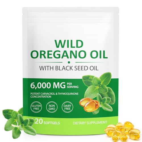 Oregano Oil Capsules, 240mg Carvacrol – 300mg Wild Oil of Oregano per Softgel with 600mg Black Seed Oils for Immune Support & Digestive Health,120 Count (4 Month Supply)