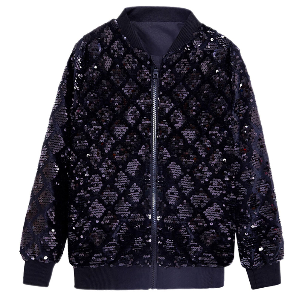 Shiny Sequin Blazer Jacket Men's Bomber Style Black Metallic Baseball Sequin Jacket With Zip Halloween Disco Party XXL